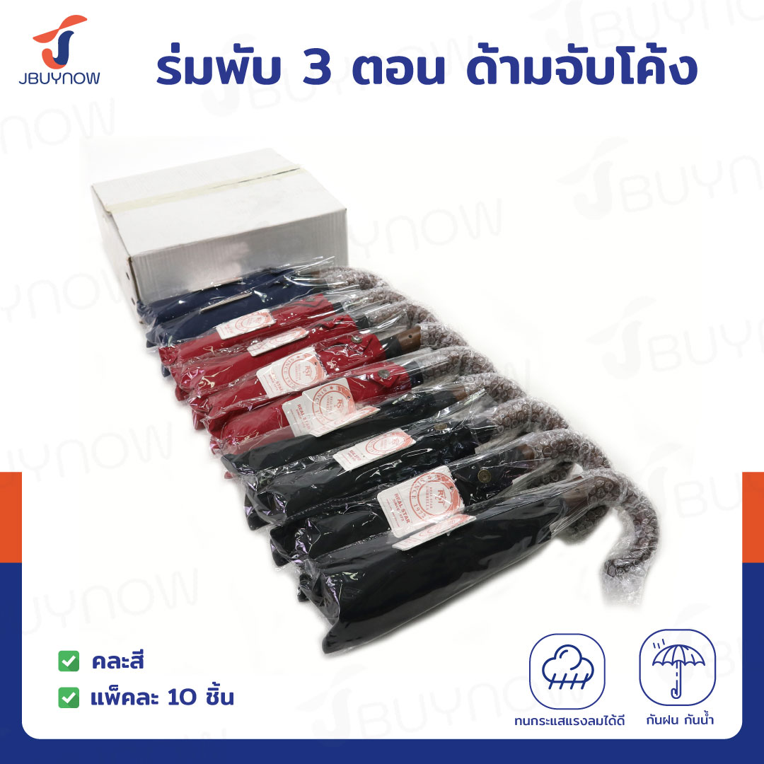 ร่มพับ 3 ตอน ร่มพรีเมี่ยม ด้ามจับโค้ง คละสี แพ็คละ 10 ชิ้น RST3908