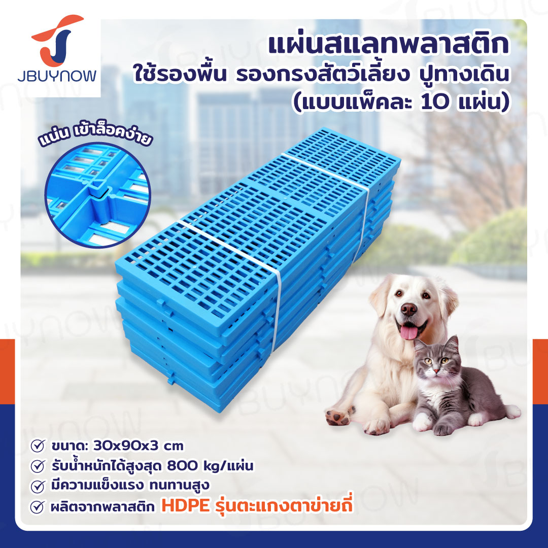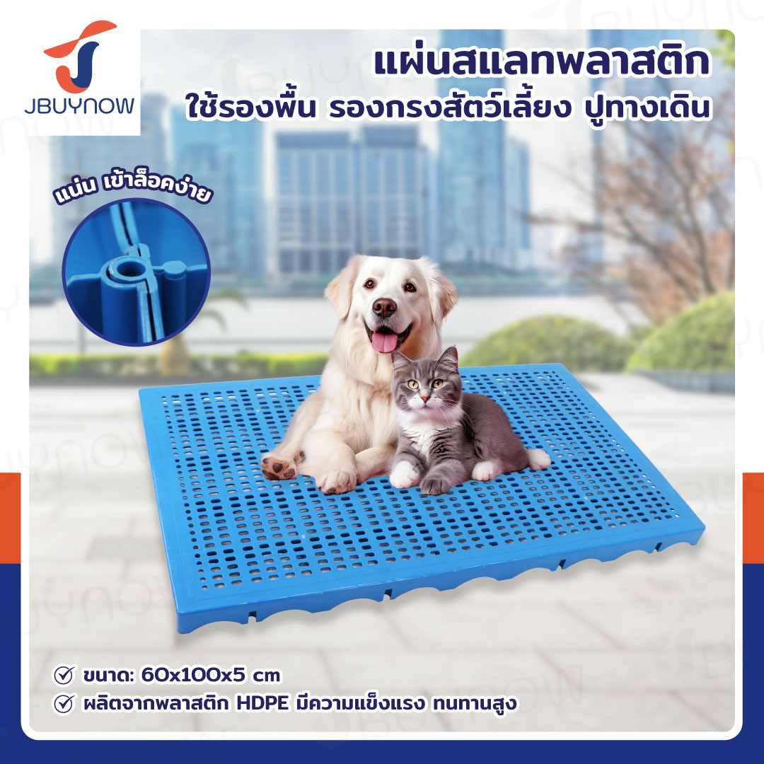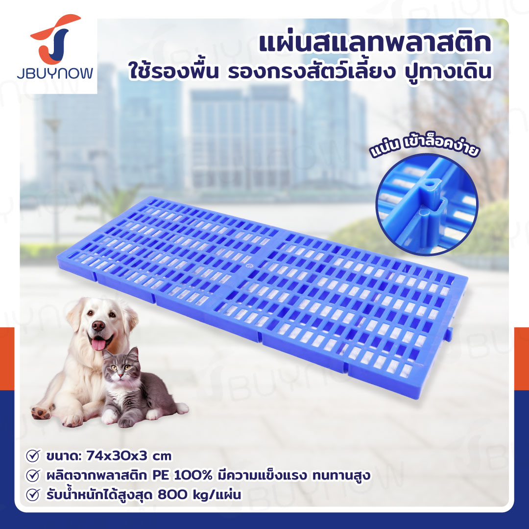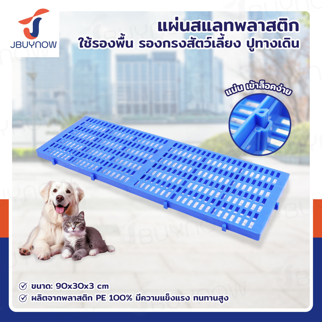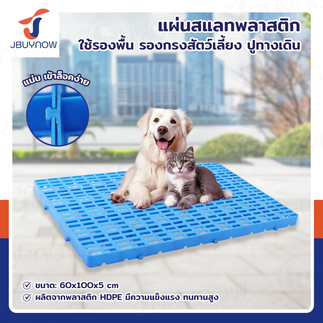 เเผ่นสเเลทพลาสติก แผ่นรองกรงสัตว์เลี้ยง 60x100x5 ซม. สีฟ้า JBUYNOW 1006