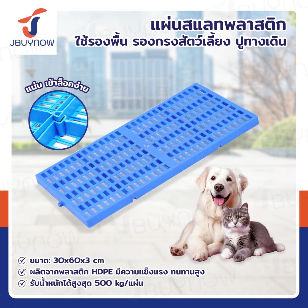 เเผ่นสเเลทพลาสติก แผ่นรองกรงสัตว์เลี้ยง 30x60x3 cm สีฟ้า JBUYNOW LH82-051