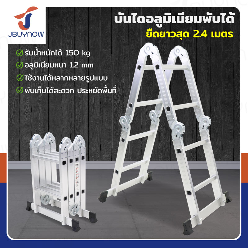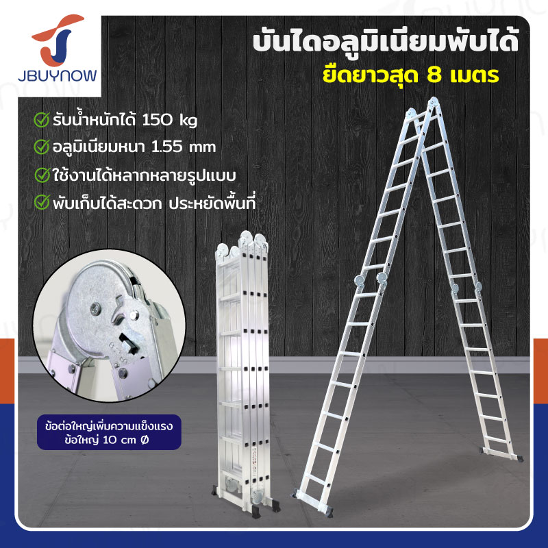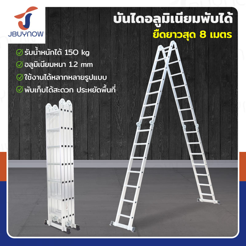 บันไดพับได้ อลูมิเนียมแท้ทั้งตัว 8 ขั้น 2.4M SMJ4X2
