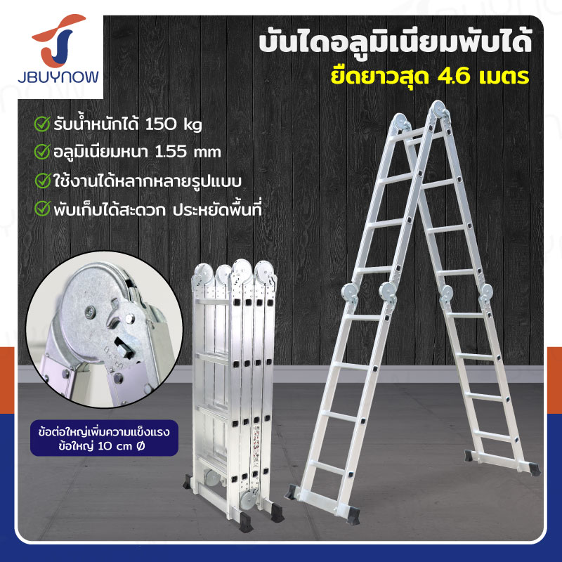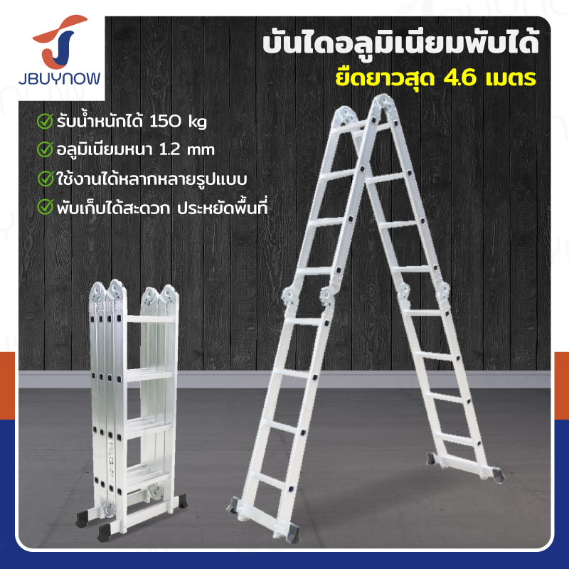 บันไดพับได้ อลูมิเนียมแท้ทั้งตัว 16 ขั้น 4.6M ข้อใหญ่ BGJ4X4