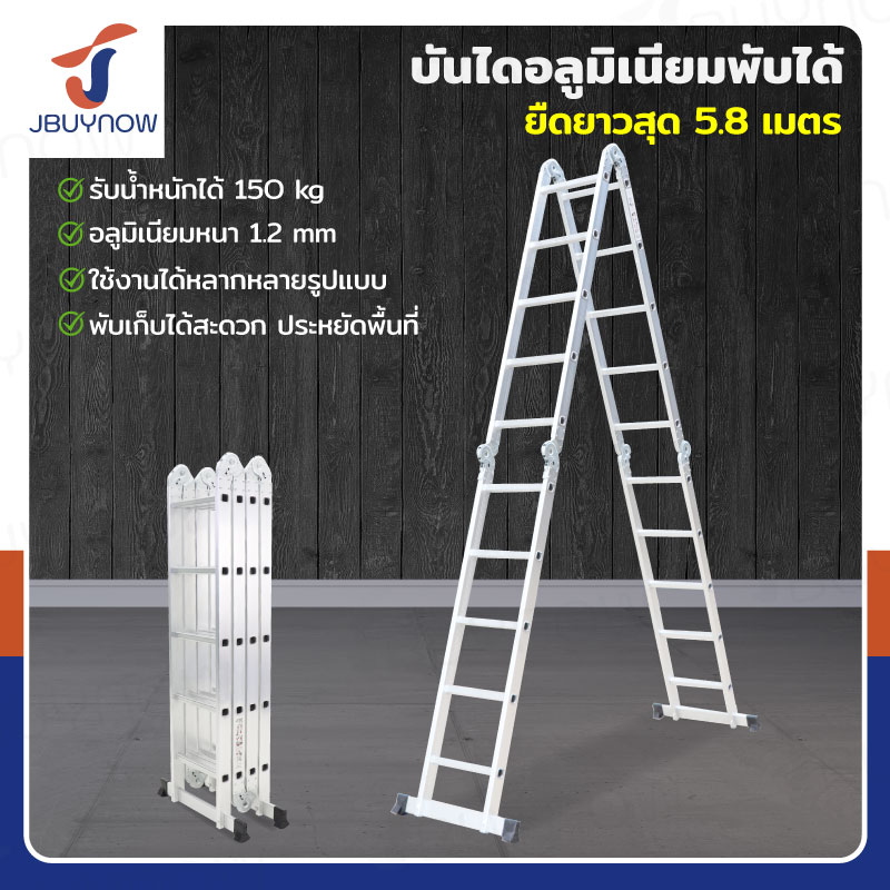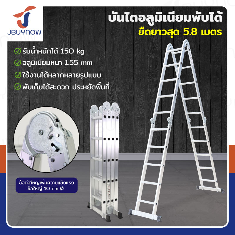 บันไดพับได้ อลูมิเนียมแท้ทั้งตัว 20 ขั้น 5.8M ข้อใหญ่ BGJ4X5