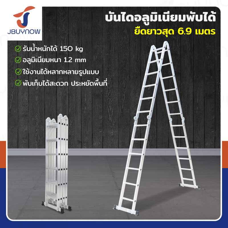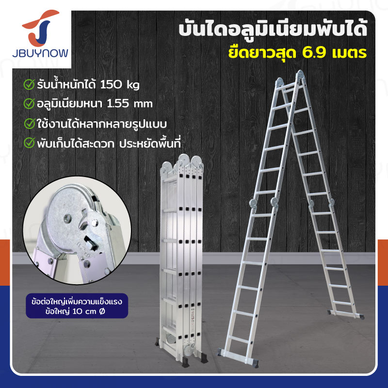 บันไดพับได้ อลูมิเนียมแท้ทั้งตัว 24 ขั้น 6.9M ข้อใหญ่ BGJ4X6