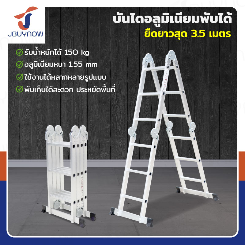 บันไดพับได้ อลูมิเนียมแท้ทั้งตัว 12 ขั้น 3.5M ข้อใหญ่ BGJ4X3