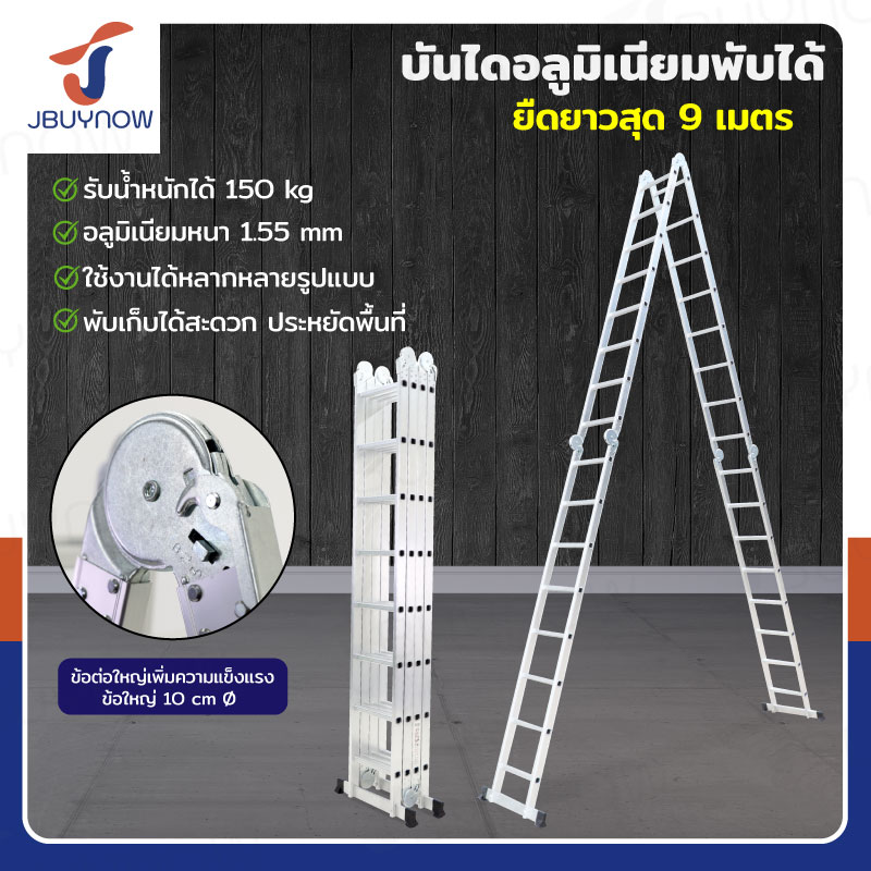 บันไดพับได้ อลูมิเนียมแท้ทั้งตัว 32 ขั้น 9M ข้อใหญ่ BGJ4X8