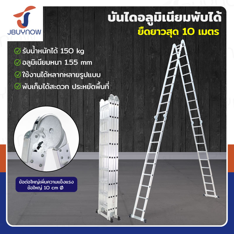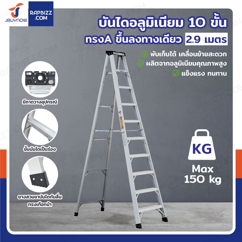 บันไดอลูมิเนียม 10 ขั้น 2.9 เมตร ทรงA ขึ้นลงทางเดียว มีที่วางอุปกรณ์ JBUYNOW ARD-30