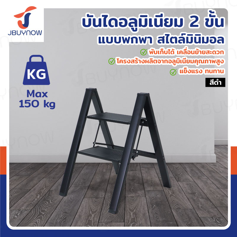 บันไดอลูมิเนียม 2 ขั้น 0.6 เมตร แบบพกพา สไตล์มินิมอล สีดำ JBUYNOW HJ-2