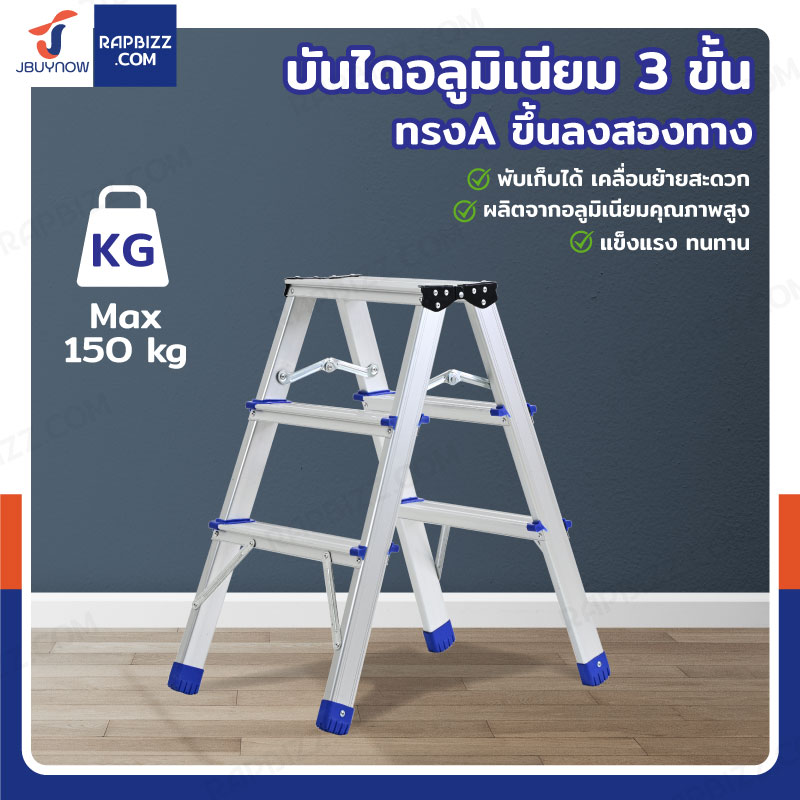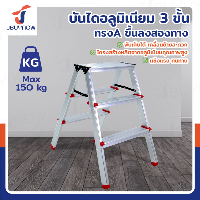 บันไดอลูมิเนียม 3 ขั้น ทรงA ขึ้นลงสองทาง JBUYNOW TD-3