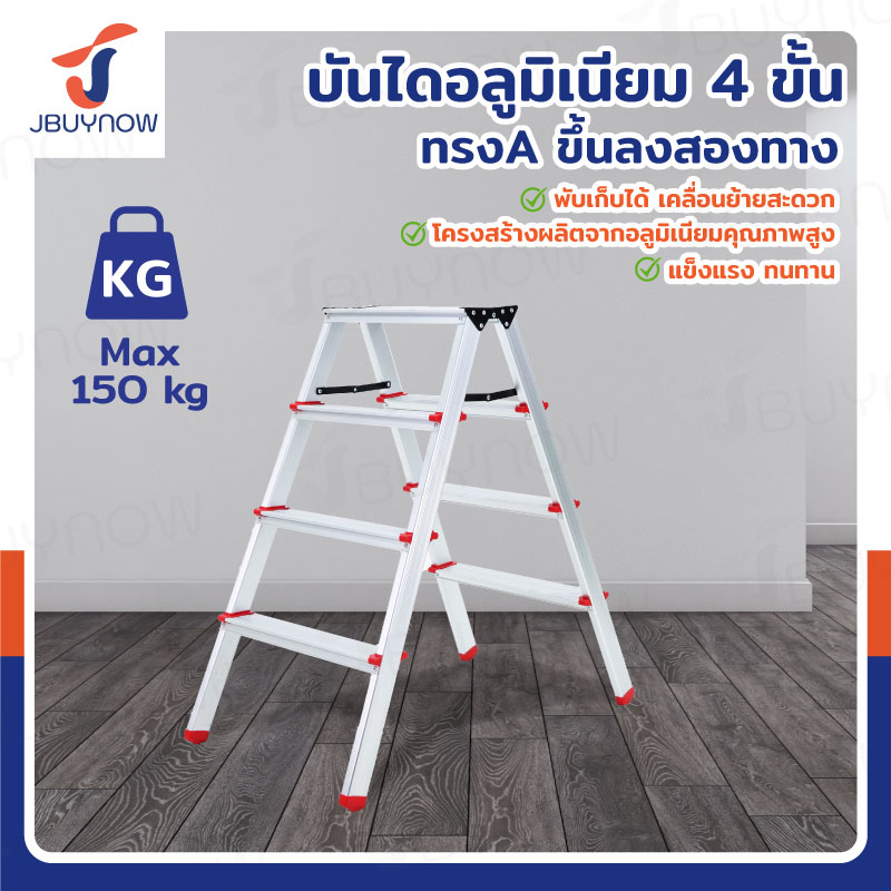 บันไดอลูมิเนียม 4 ขั้น 0.9 เมตร ทรงA ขึ้นลงสองทาง JBUYNOW TD-4