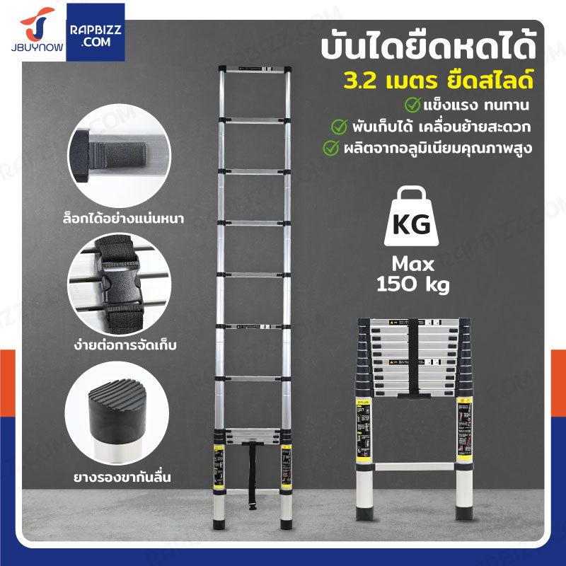 บันไดยืดหดได้ 3.2 เมตร บันได อลูมิเนียม พับได้ ยืดสไลด์