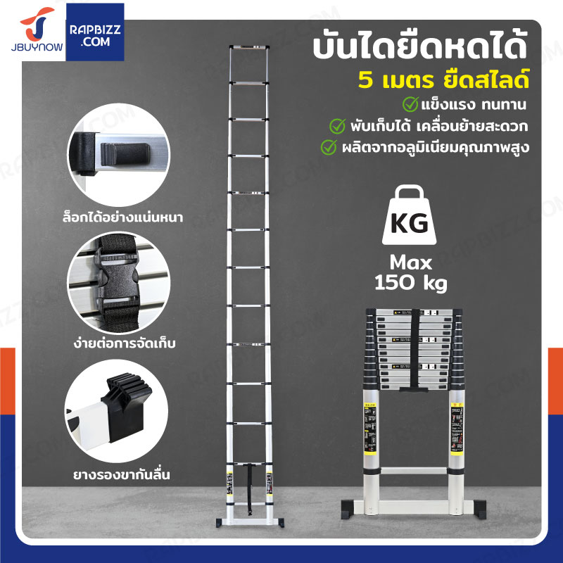 บันไดยืดหดได้ 5 เมตร บันได อลูมิเนียม พับได้ ยืดสไลด์