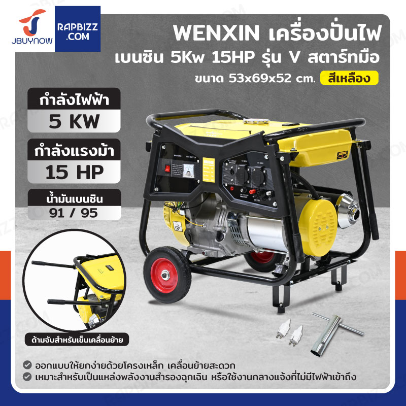 เครื่องปั่นไฟ เบนซิน 5Kw 13HP 4จังหวะ มอเตอร์ลวดอลูมิเนียม สีเหลือง WENXIN WX-V5KW