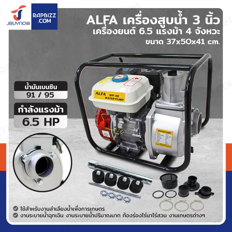 ALFA เครื่องสูบน้ำเบนซิน 3 นิ้ว 6.5 แรงม้า 4 จังหวะ รุ่น WP-30