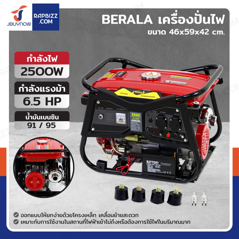 BERALA เครื่องปั่นไฟ 2500W 6.5แรงม้า TP3900