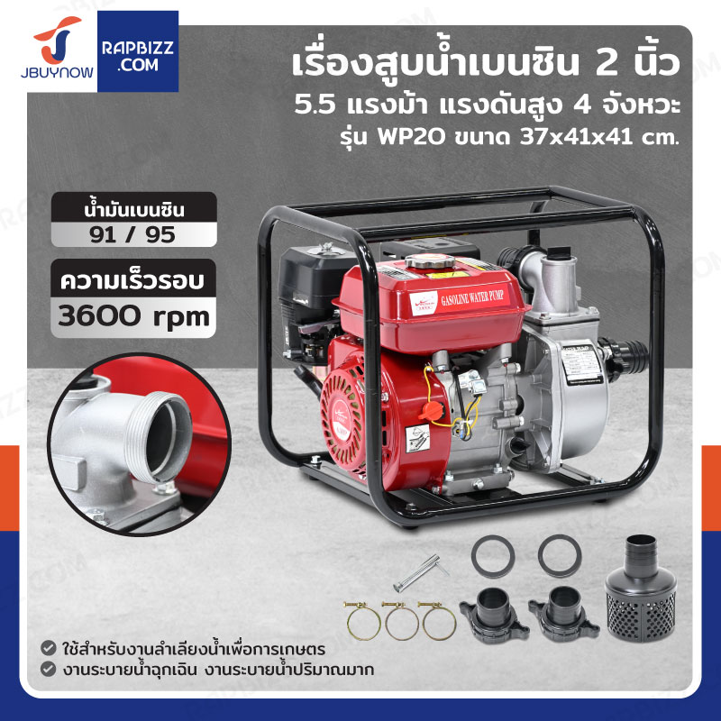 เครื่องสูบน้ำเบนซิน 2 นิ้ว 5.5HP 3600rmp แรงดันสูง 4จังหวะ WENXIN WP20