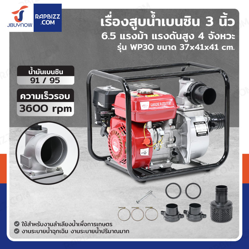 เครื่องสูบน้ำเบนซิน 3 นิ้ว 6.5HP 3600rmp แรงดันสูง 4จังหวะ WENXIN WP30
