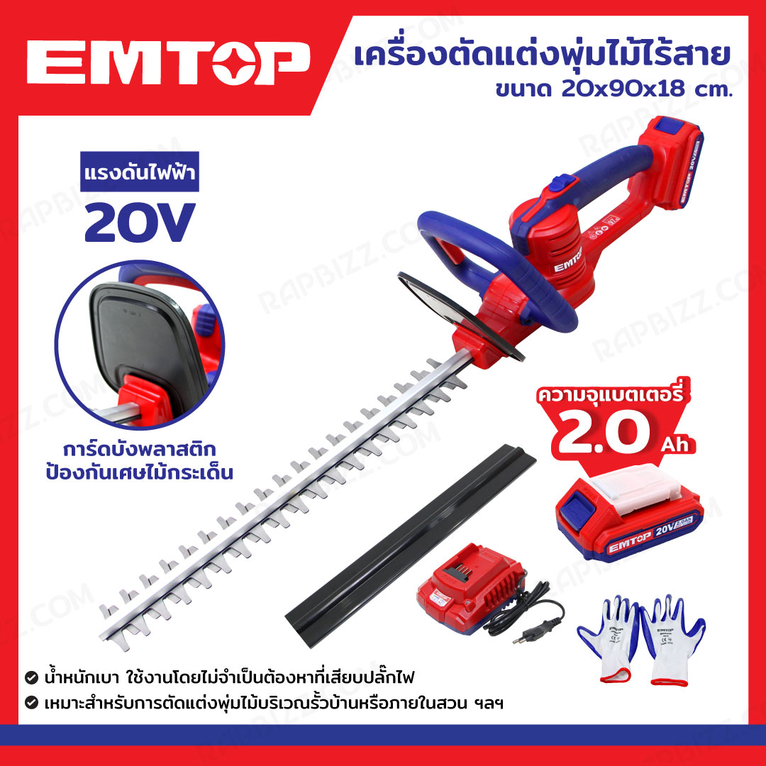 EMTOP เครื่องตัดแต่งพุ่มไม้ไร้สาย ELHT204611