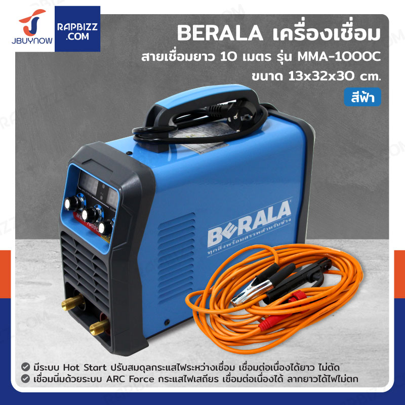 BERALA เครื่องเชื่อม สายเชื่อมยาว 10 เมตร รุ่น MMA-1000C สีฟ้า