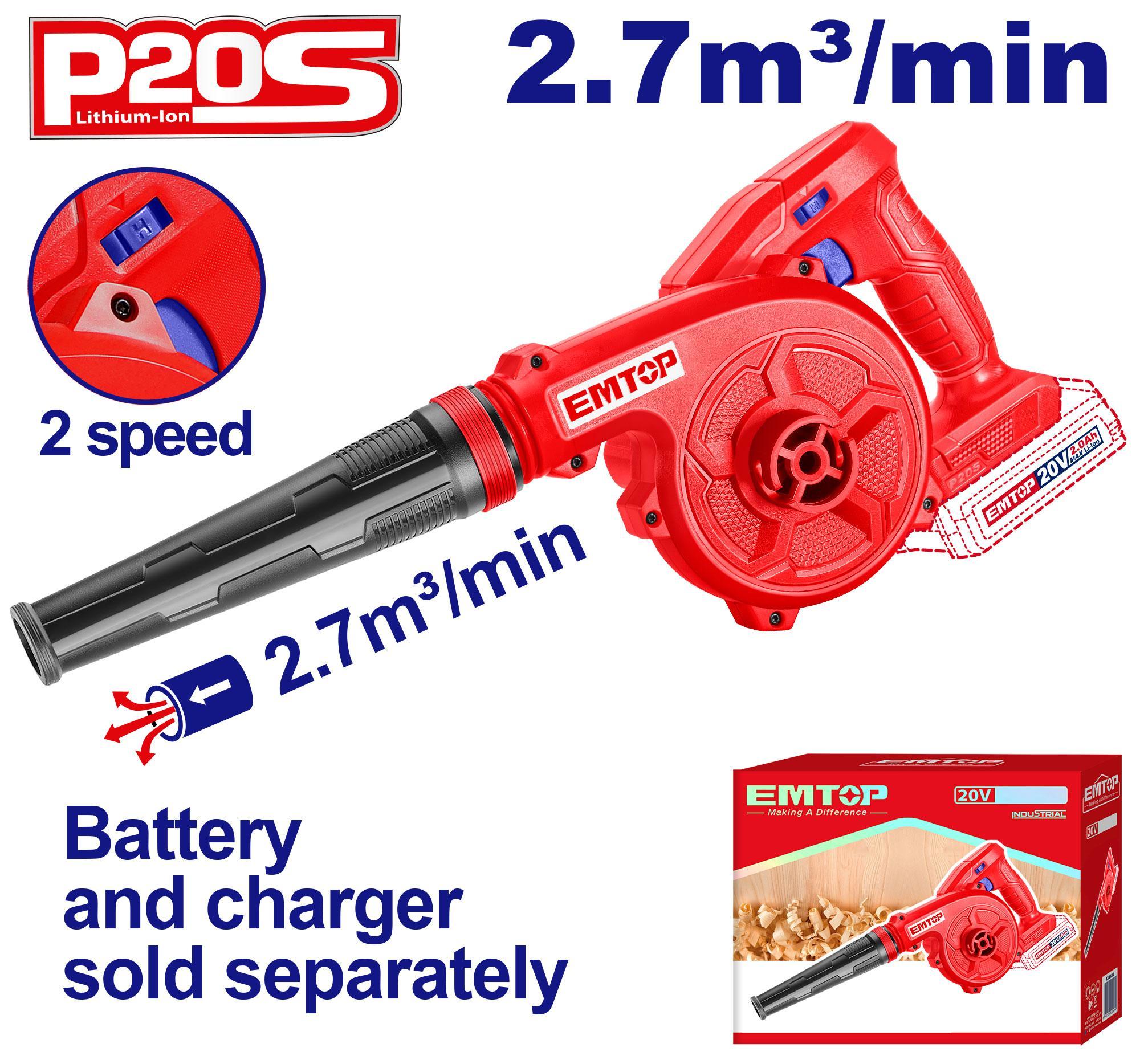 EMTOP เครื่องเป่าลมแบตเตอรี่ไร้สาย 20V 2.7 m³/min (เฉพาะเครื่อง) ELAB20058