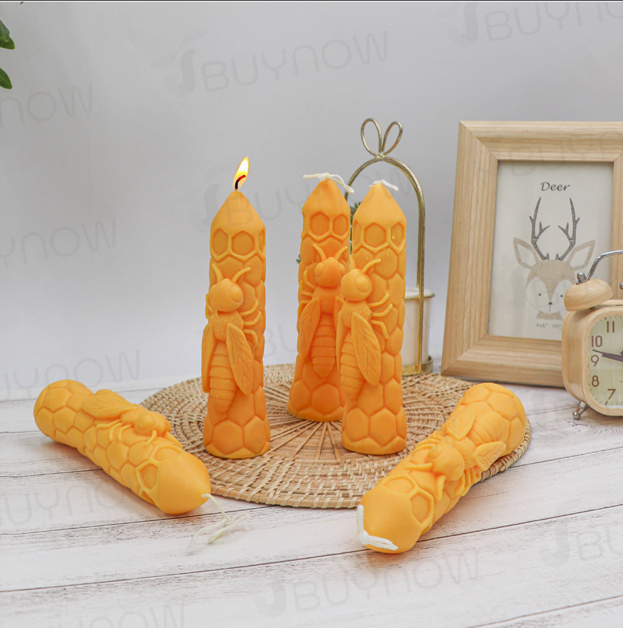 Bees Candle เทียนแท่ง สลักลายผึ้ง 4x4x16cm RB230504-2