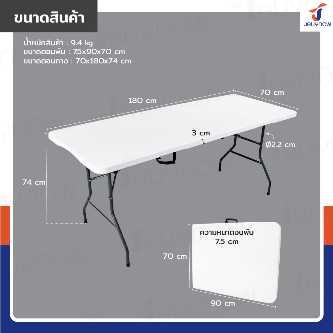โต๊ะพับได้ HDPE โต๊ะปิกนิค 70x180x74 ซม. สีขาว JBUYNOW Z180A