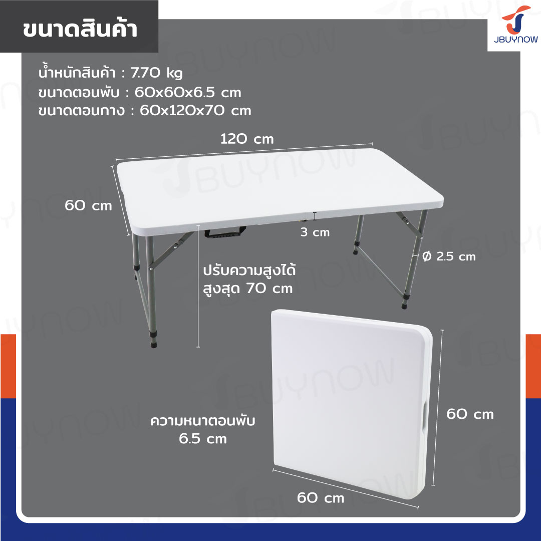 โต๊ะพับได้ HDPE โต๊ะปิกนิค 60x120x70 ซม. สีขาว JBUYNOW Z120A