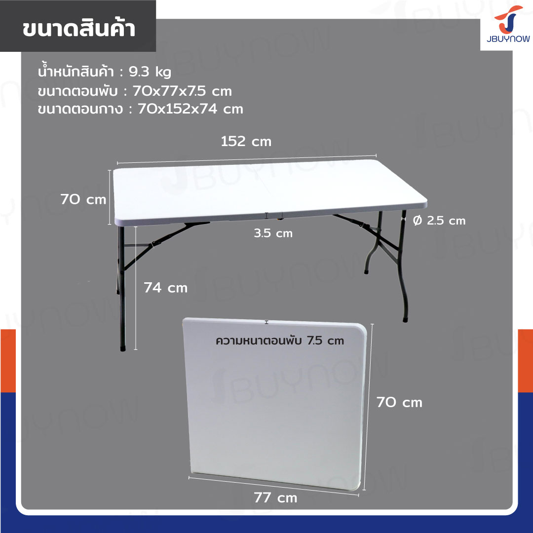 โต๊ะพับได้ HDPE โต๊ะปิกนิค 70x152x74 ซม. สีขาว JBUYNOW Z152A