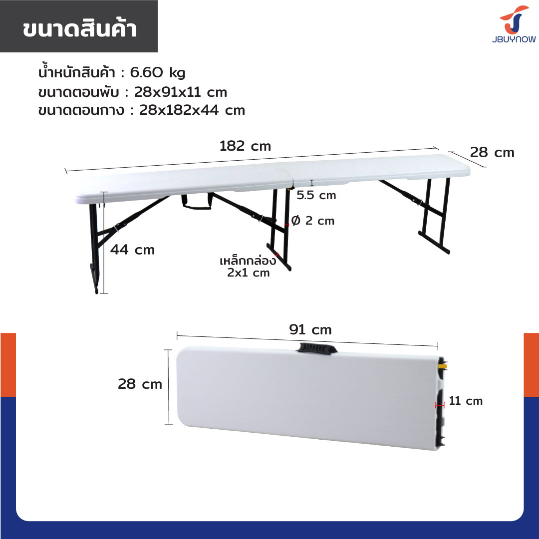 ม้านั่งยาว พับได้ เก้าอี้ปิกนิค HDPE 28x182x44 ซม. JBUYNOW ZD183A
