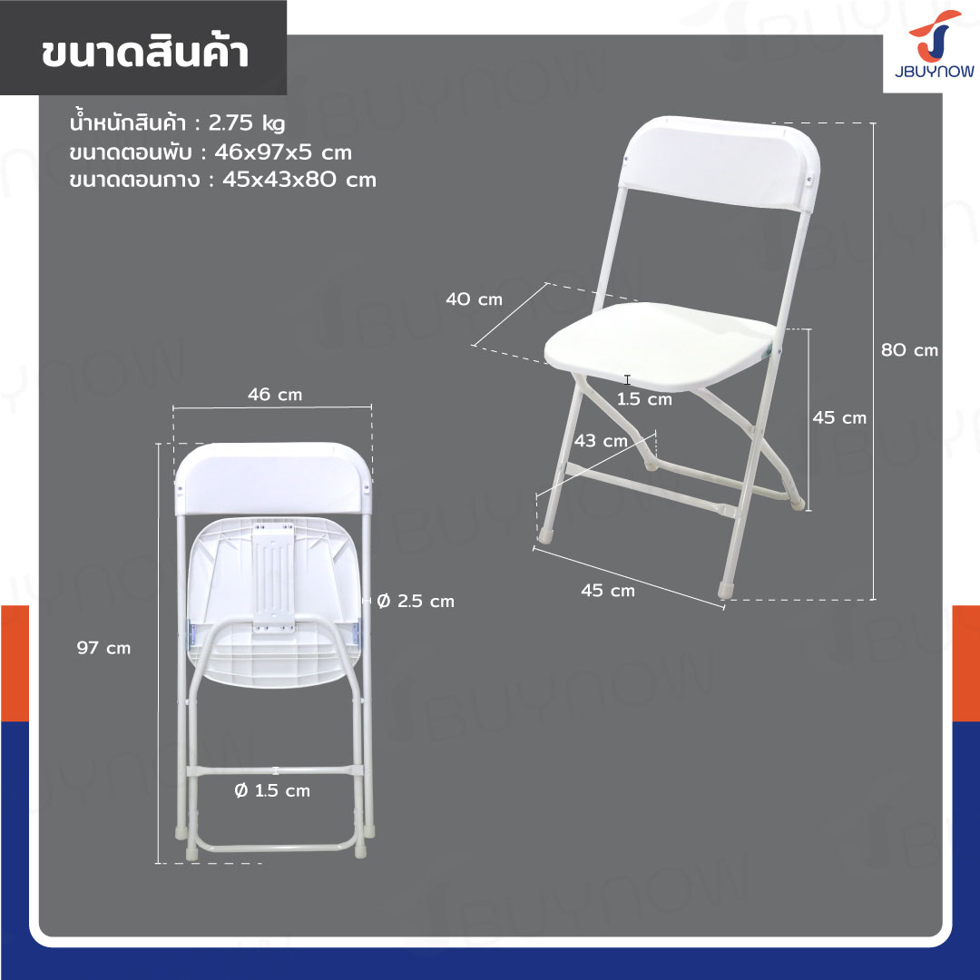 เก้าอี้พับ HDPE มีพนักพิง 45x43x81 ซม. สีขาว CF01