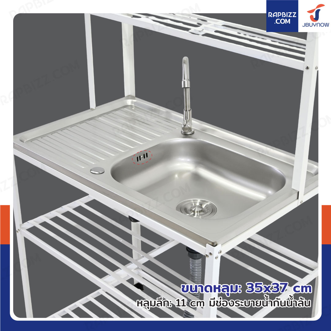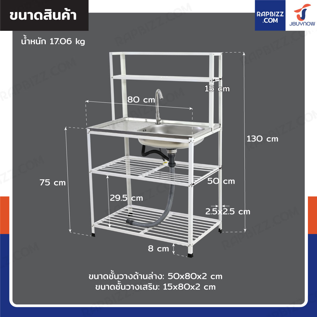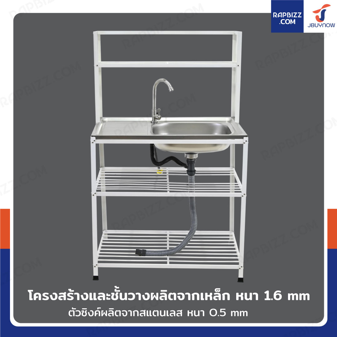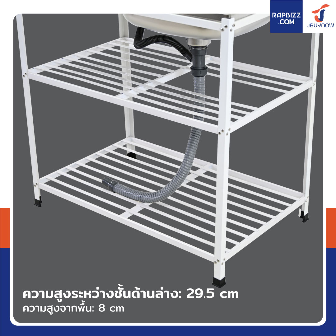 ซิงค์สแตนเลส ล้างจาน 1 หลุม รุ่นชั้นวาง+ขาเหล็ก 50x80x130 cm