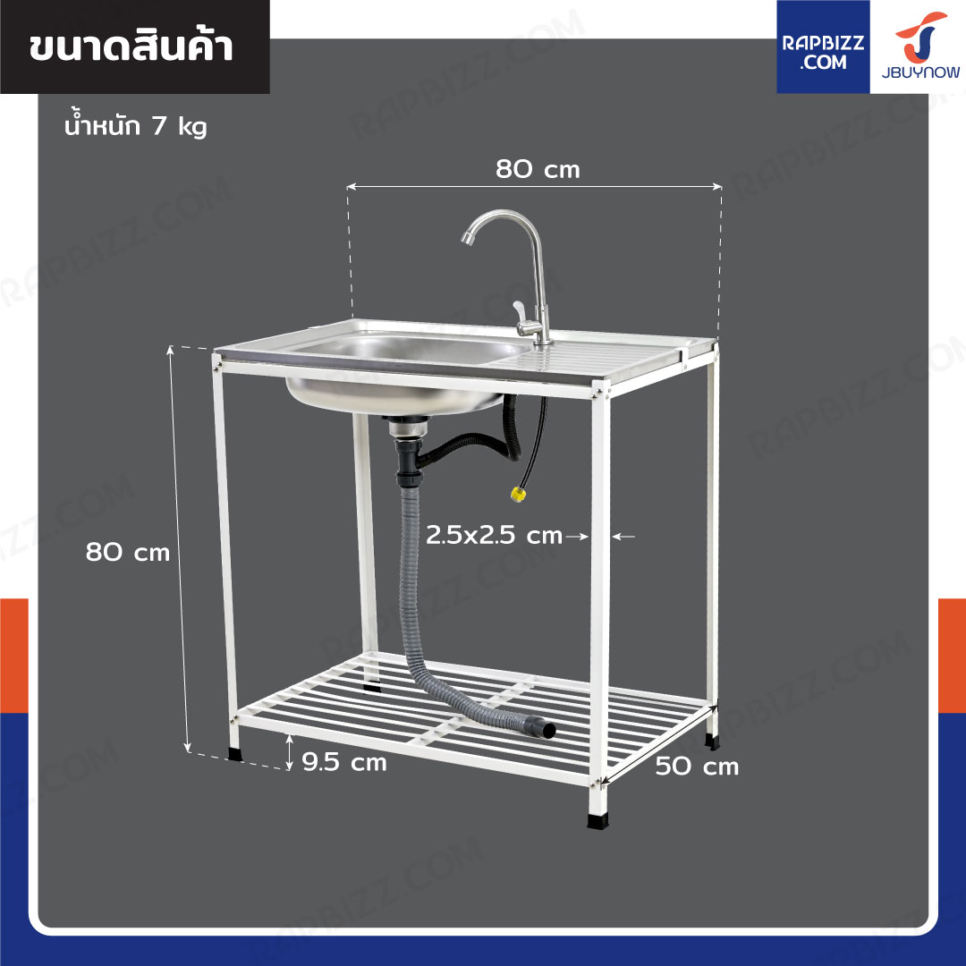 ซิงค์สแตนเลส 201 ล้างจาน 1 หลุม รุ่นขาเหล็ก 50x80x80 cm