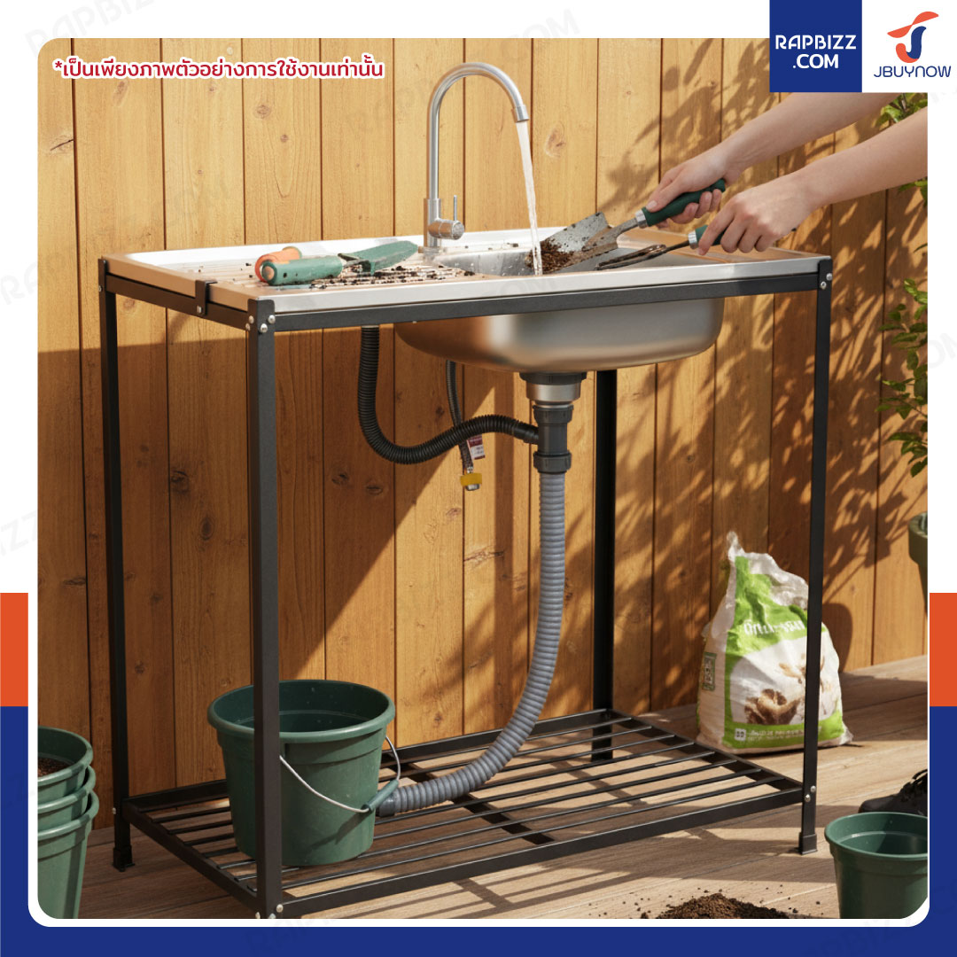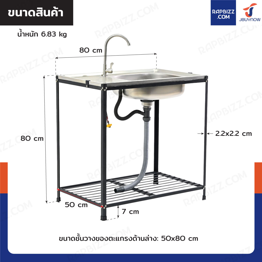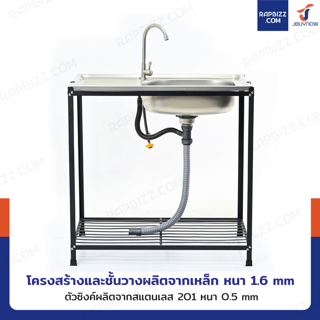 ซิงค์สแตนเลส 201 อ่างล้างจาน 1 หลุม รุ่นขาเหล็กสีดำ 50x80x80 cm