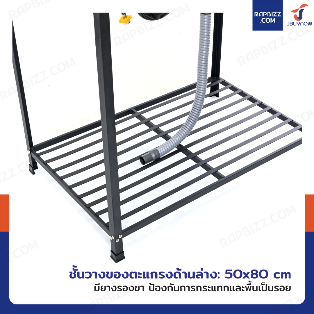 - โครงสร้างและชั้นวางผลิตจากเหล็ก