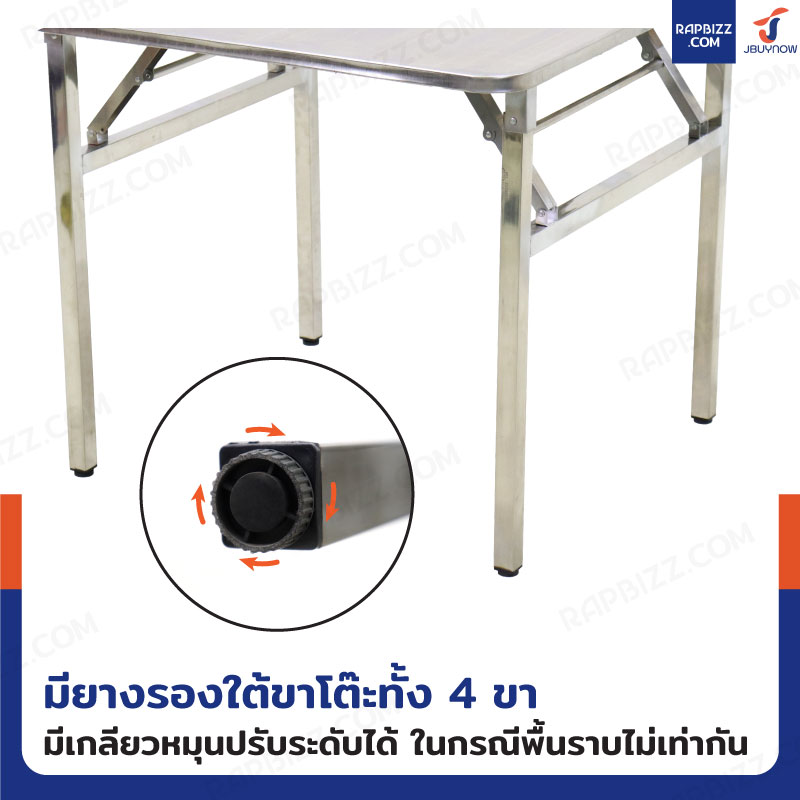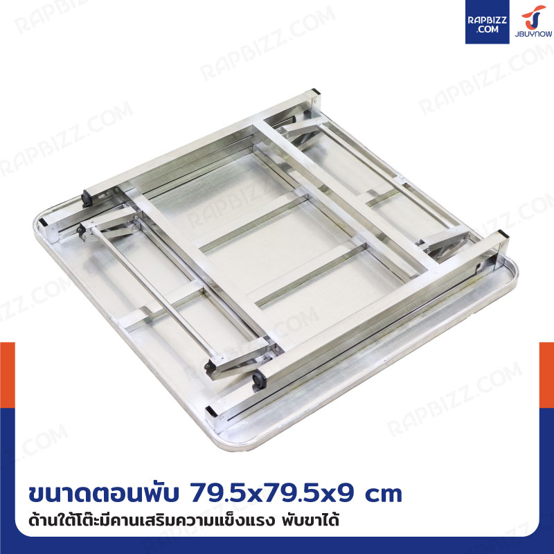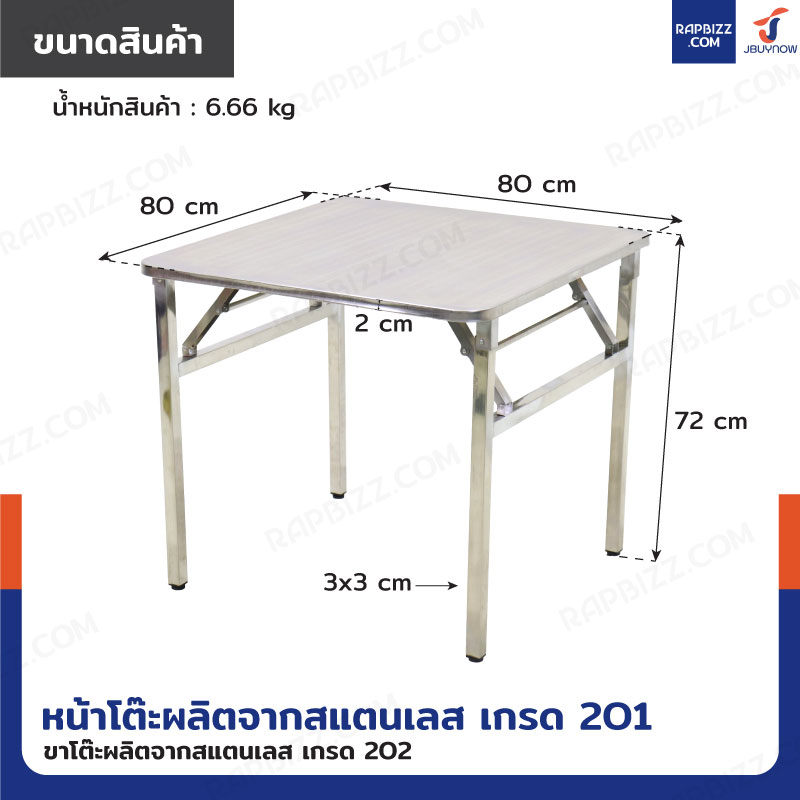 โต๊ะสแตนเลส201 ทรงเหลี่ยม พับขาได้ แบบหน้าโต๊ะมีลาย 80x80x72 cm