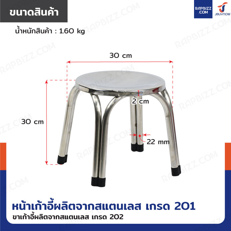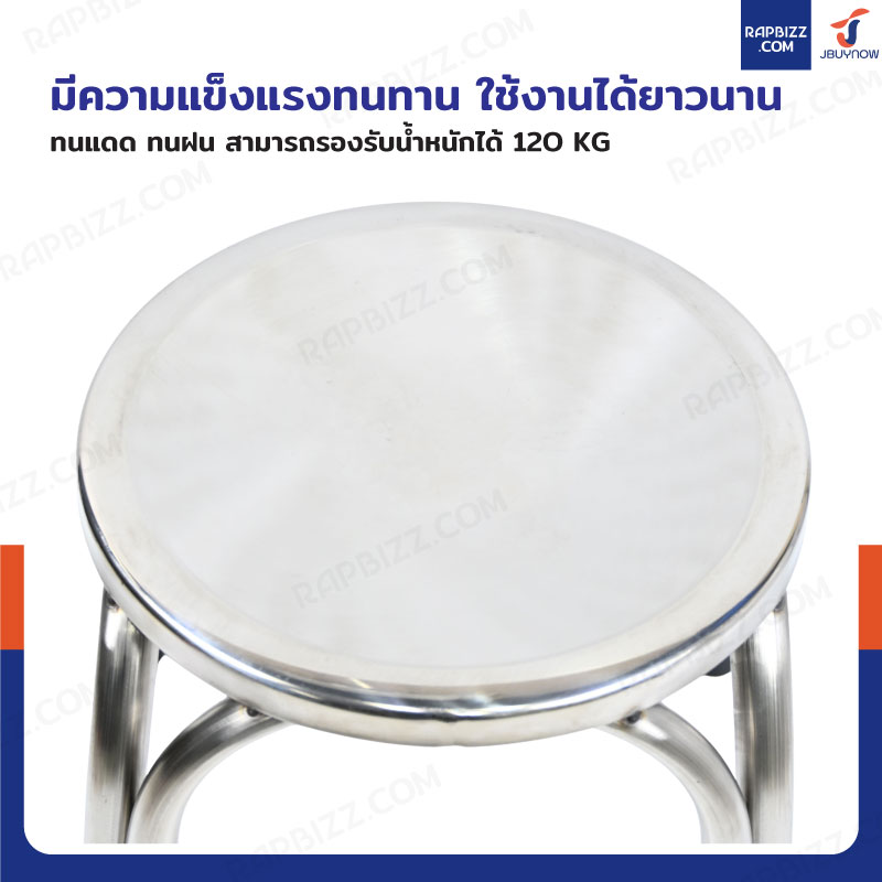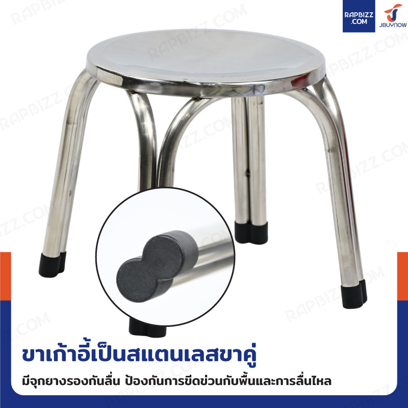 เก้าอี้สแตนเลส 201 ขาคู่ มียางรอง รุ่นหนาพิเศษ ทรงกลม 30x30x30 cm