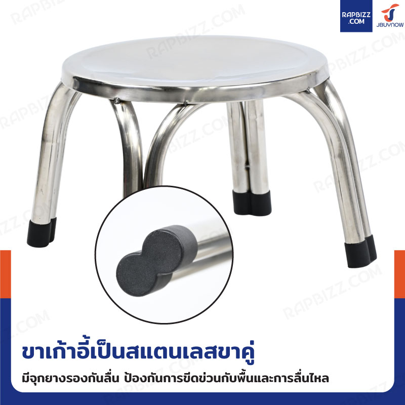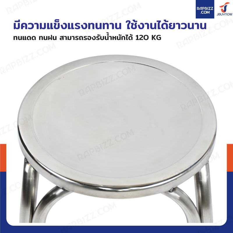 เก้าอี้สแตนเลส 201 ขาคู่ มียางรอง รุ่นหนาพิเศษ ทรงกลม 30x30x22 cm