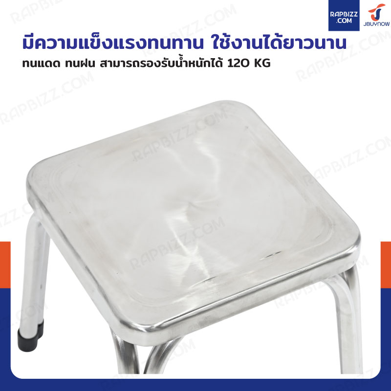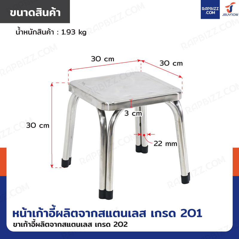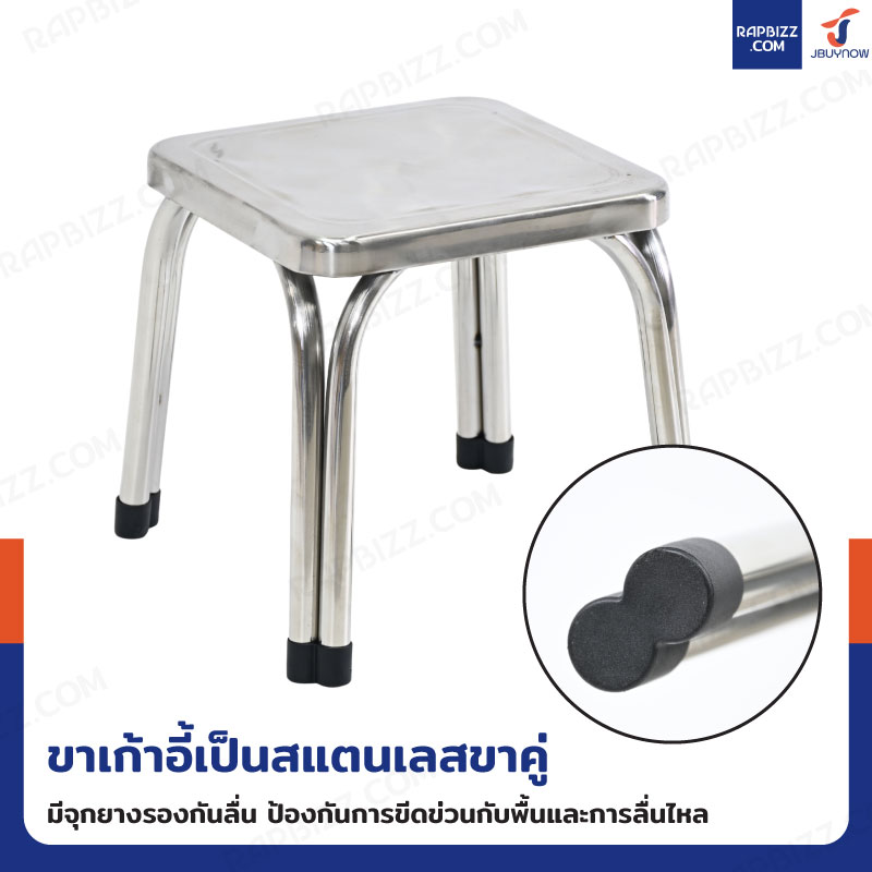 เก้าอี้สแตนเลส 201 ขาคู่ มียางรอง รุ่นหนาพิเศษ ทรงเหลี่ยม 30x30x30 cm