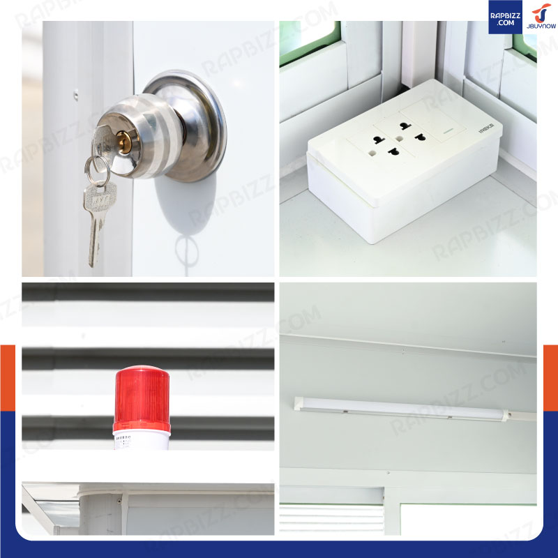 - ระบบไฟฟ้า: สวิตช์ไฟ 2 สวิตช์ ปลั๊กไฟ 1 ชุด (สวิตไฟ2ที่ ไฟส่องสว่าง และไฟฉุกเฉิน)