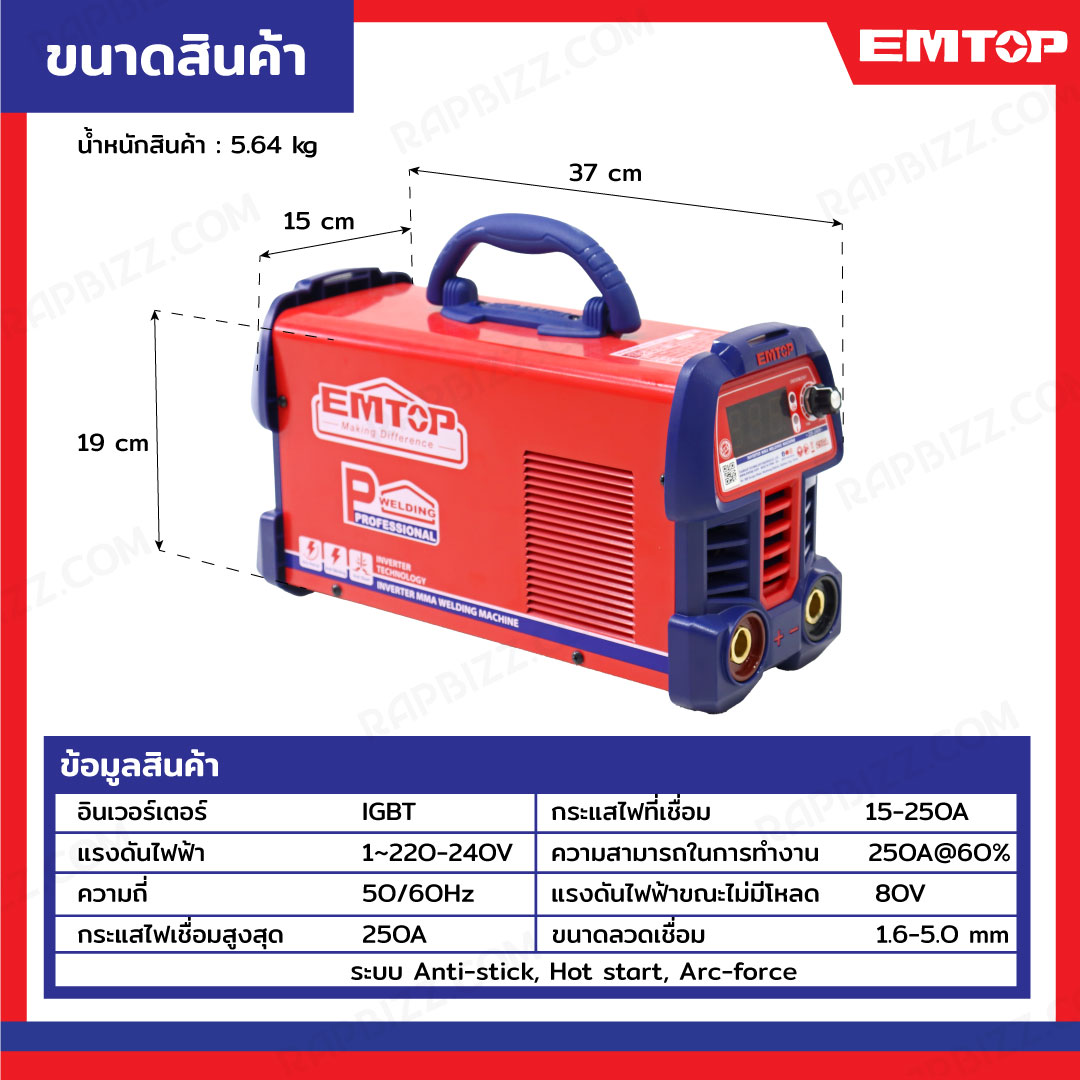EMTOP ตู้เชื่อม เครื่องเชื่อมอินเวอร์เตอร์ 250A EWDEM2561