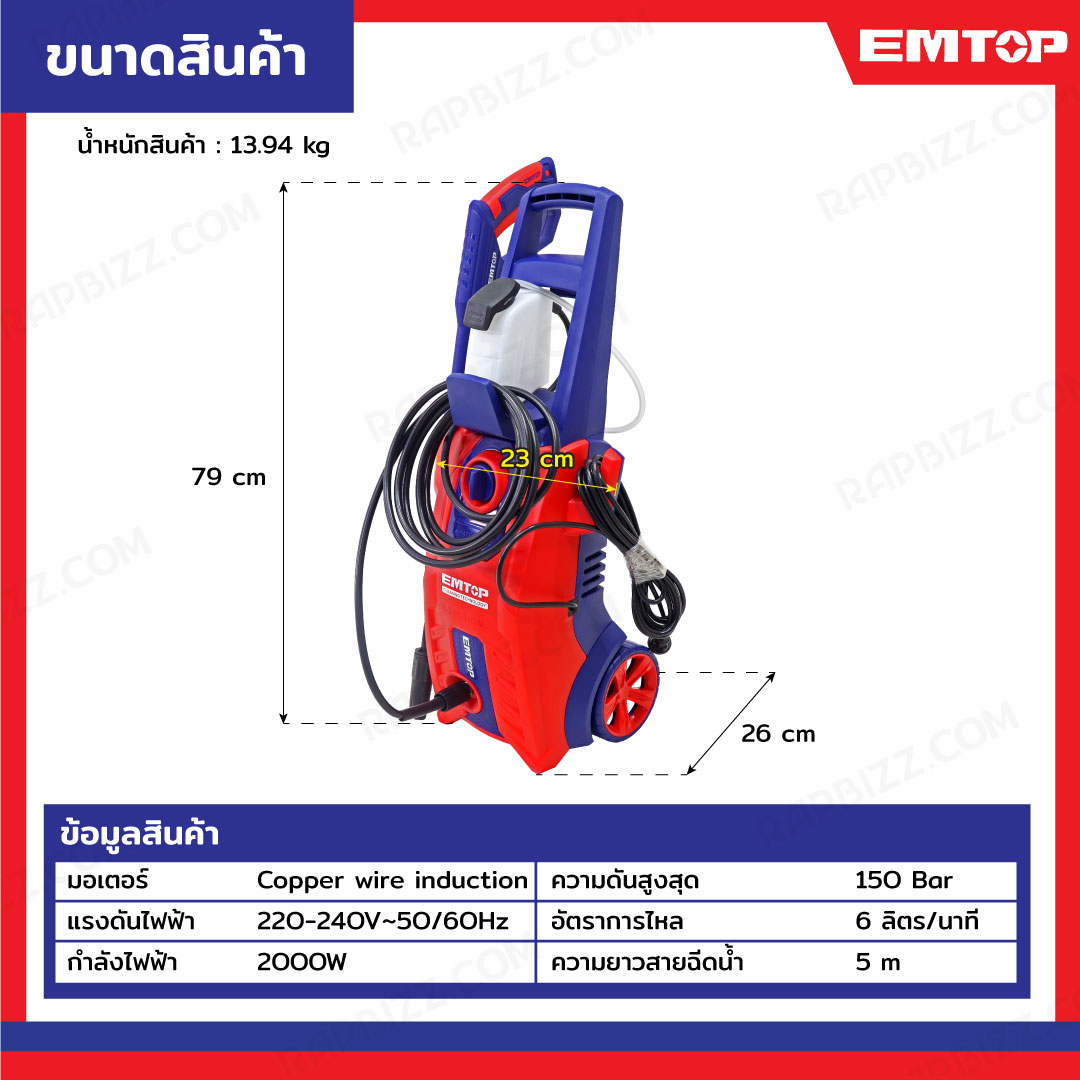 EMTOP เครื่องฉีดน้ำแรงดันสูง 2000W EHPW2001-T