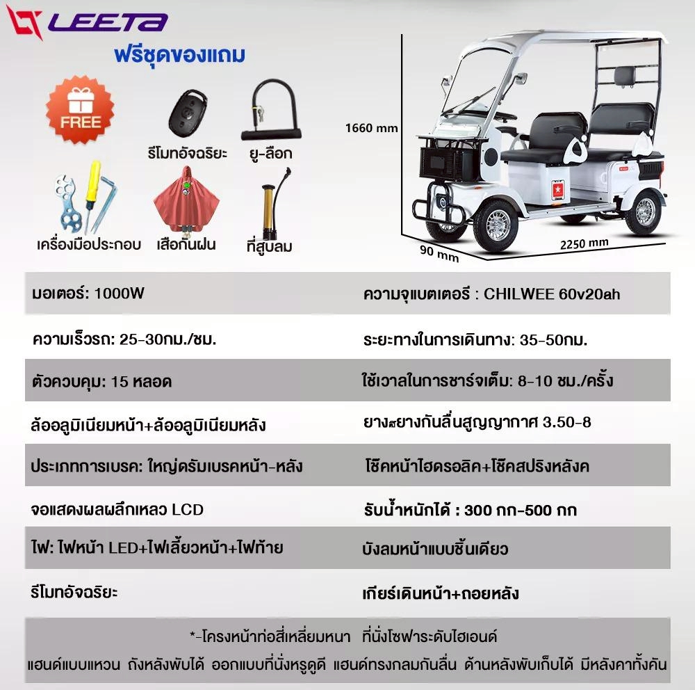 LEETA รถไฟฟ้าผู้ใหญ่ 4 ล้อ รถกอล์ฟมินิ 1000W 60V20Ah สีขาว