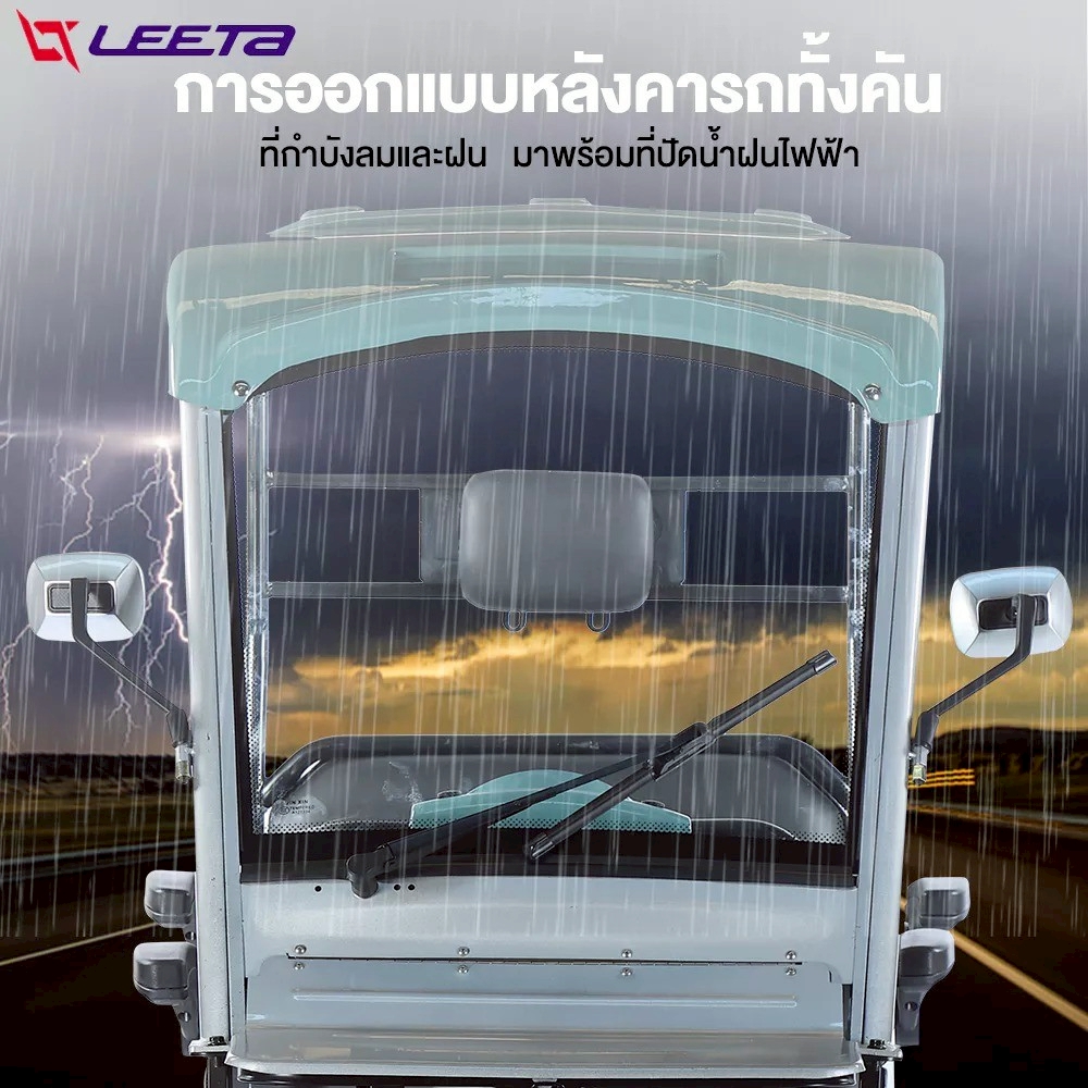 - มีบังลมและฝนด้านหน้าแบบชิ้นเดียว มาพร้อมกับที่ปัดน้ำฝนไฟฟ้า