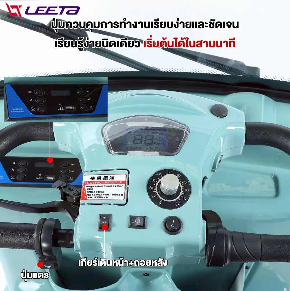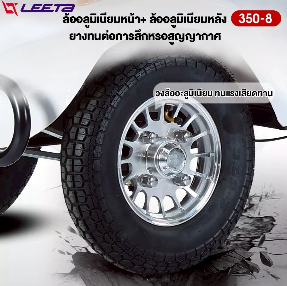 - มีล้อ 4 ล้อ ขนาด 14 นิ้ว มีดอกยางกันลื่นรอบล้อ ปลอดภัยในการใช้งาน