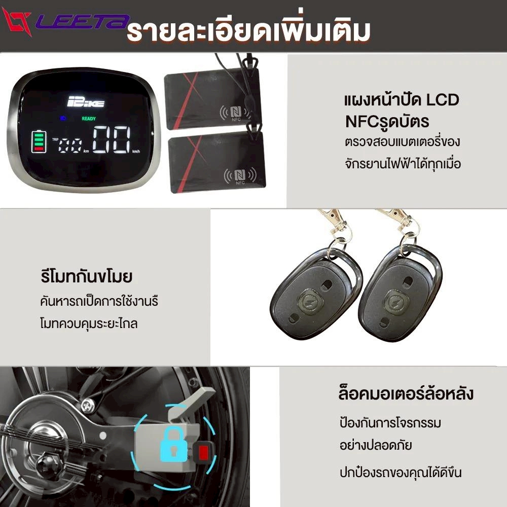 LEETA จักรยานไฟฟ้า รถไฟฟ้า 800W 48V20AH แตะบัตร NFC+รีโมทอัจฉริยะ