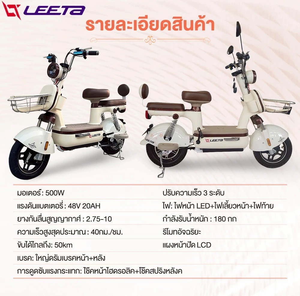 LEETA จักรยานไฟฟ้า รถไฟฟ้าผู้ใหญ่ 500W 48V20AH ไฟหน้าLED