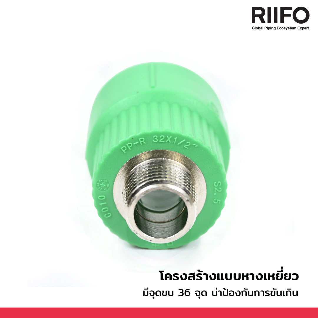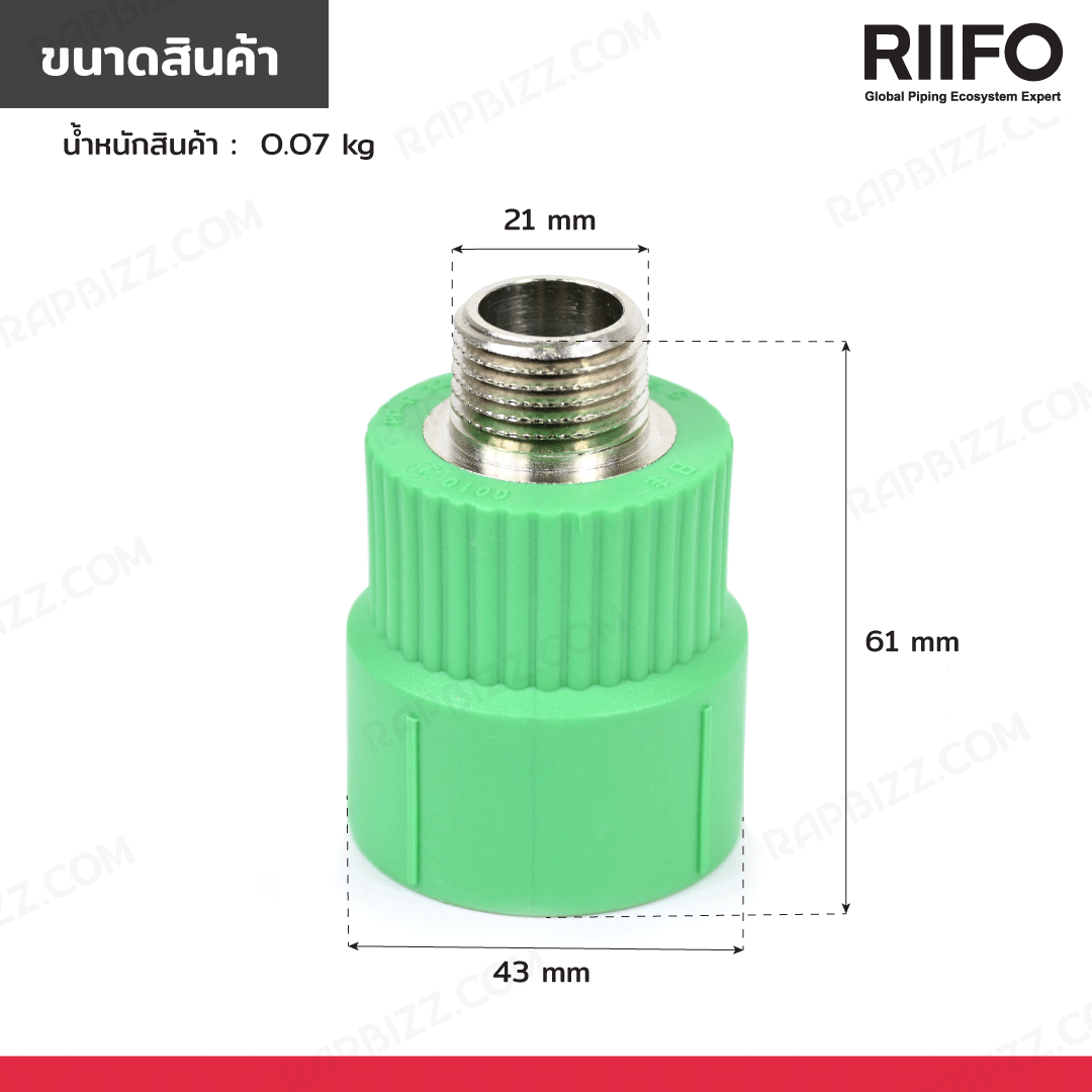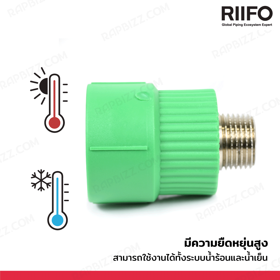 RIIFO ข้อต่อตรงเกลียวนอก PP-R ขนาด 1 -1/2M สีเขียว 000160012