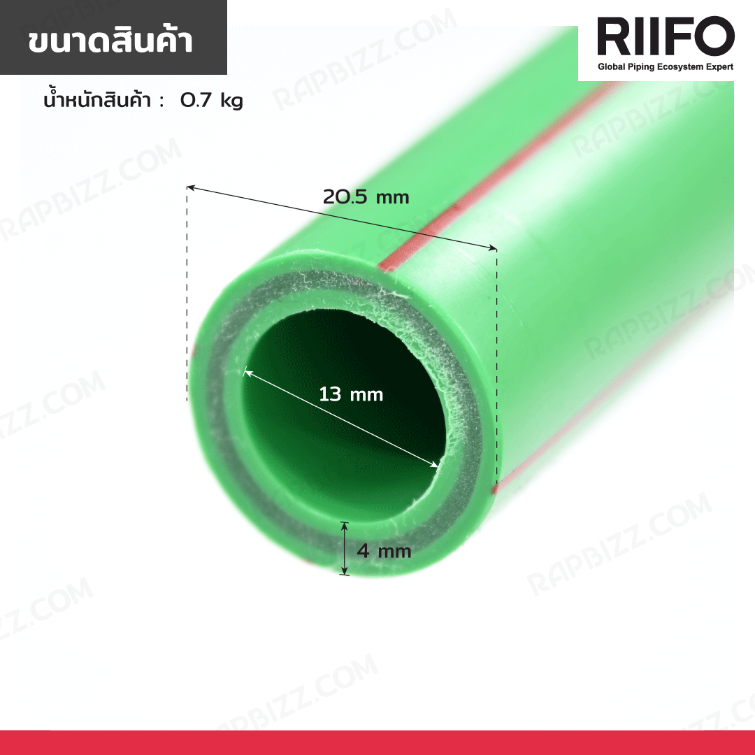 RIIFO ท่อ PP-R ขนาด 1/2 นิ้ว ยาว 4 เมตร สีเขียว FIBER COMPOSITE 000160007