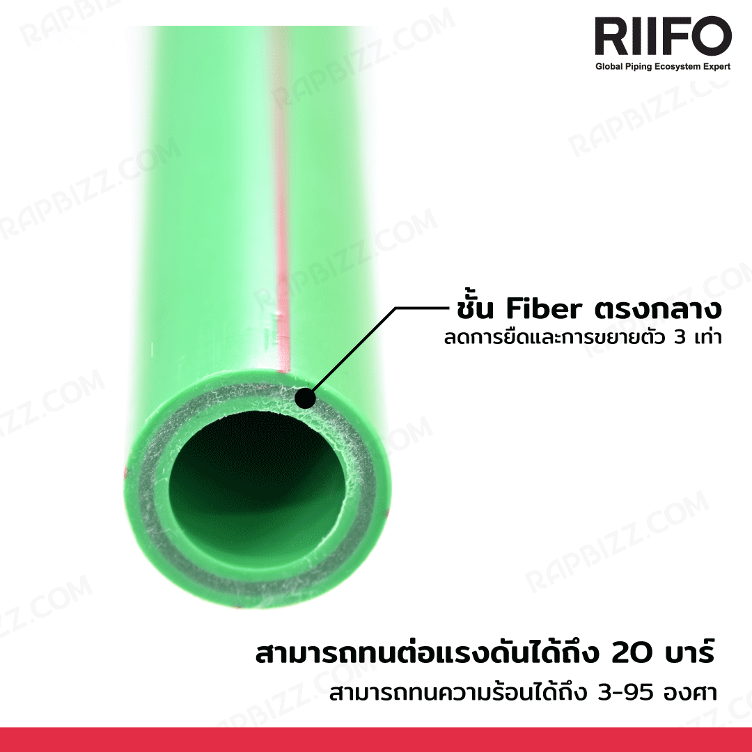 - มีชั้นไฟเบอร์ตรงกลางท่อ เพื่อลดการยืดและการขยายตัวได้ 3 เท่า