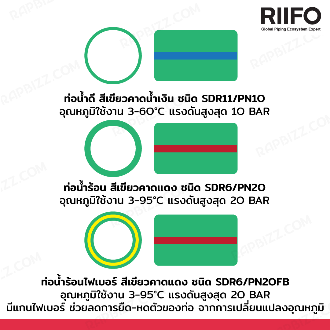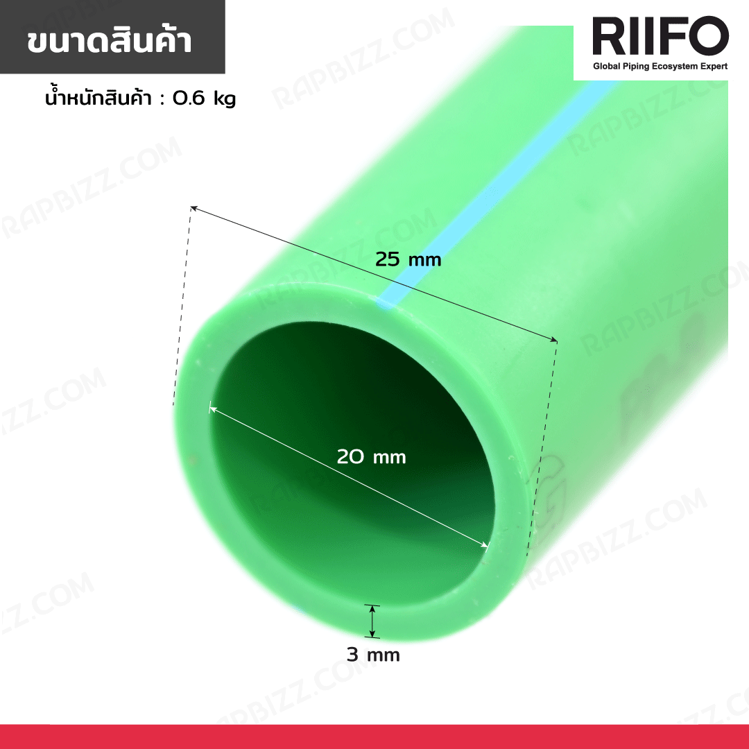 RIIFO ท่อ PP-R ขนาด 3/4 นิ้ว ยาว 4 เมตร สีเขียว ECONOMIC CLASS 000160002