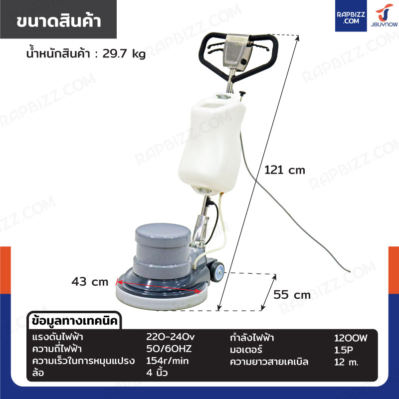 เครื่องขัดพื้นแบบแขนเดี่ยว 1200W 17 นิ้ว JBUYNOW H6508